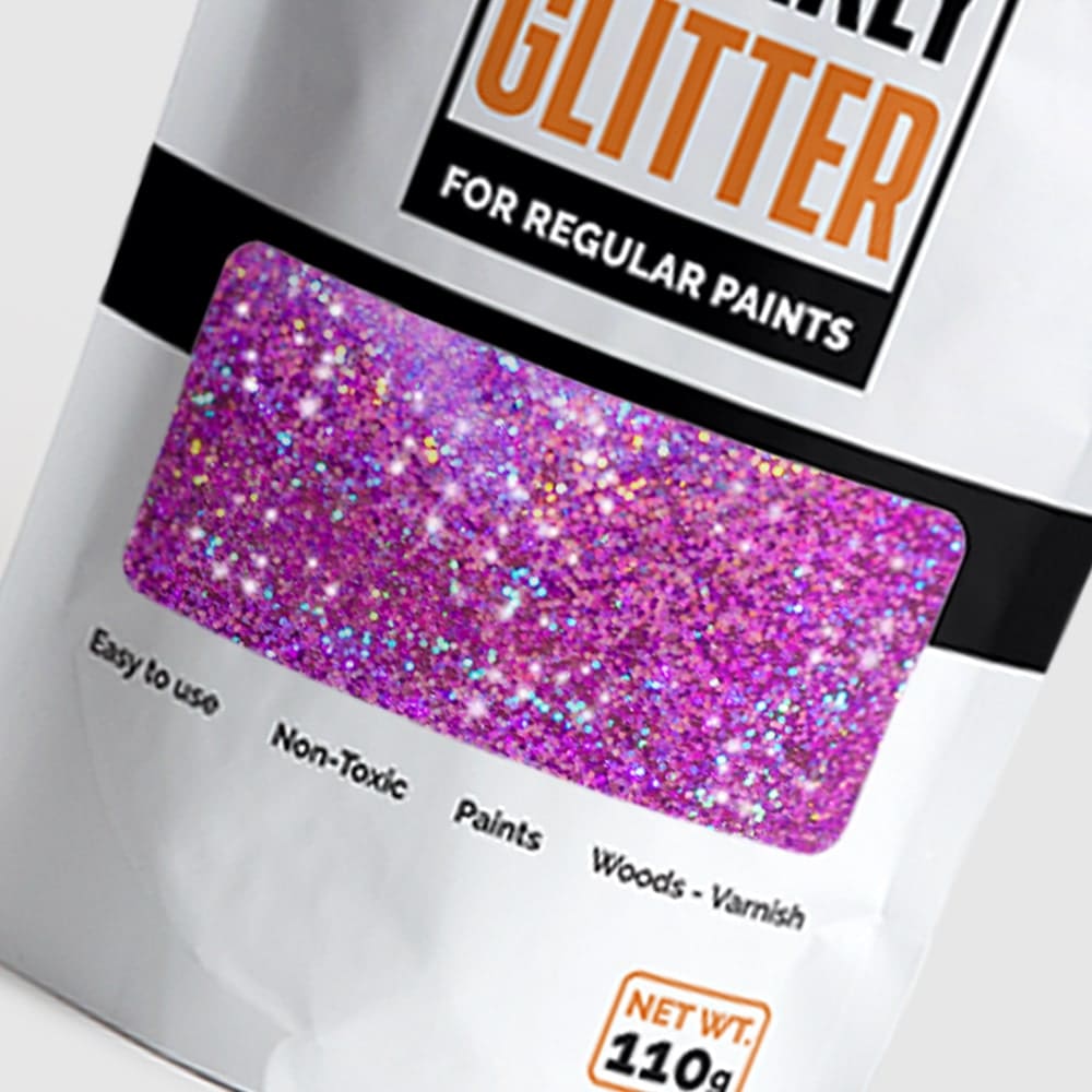 110 g pulverisert glitter blandes i 1 til 3 liter maling.