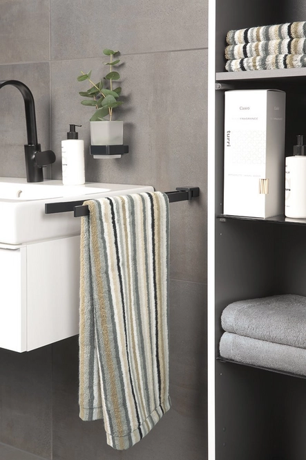 Ønsker du et baderom med en rolig og luksuriøs atmosfære? Cawö Lifestyle i fargen Pebble kombinerer tysk kvalitet med et sofistikert design. De vertikale stripene i nyanser av grått, beige og sort gir et stilrent uttrykk som passer inn i de fleste nordiske hjem.
