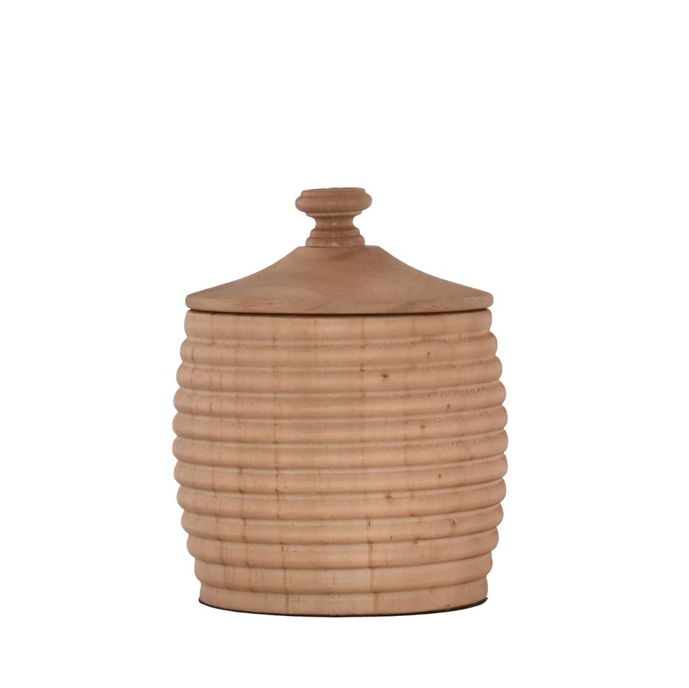 Tilfør varme og tekstur til interiøret med denne sjarmerende krukken i lyst tre.